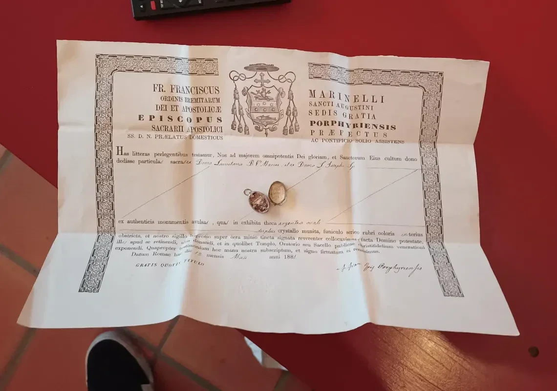 Saint Joseph Virgin Mary house and loretana veil relic and document