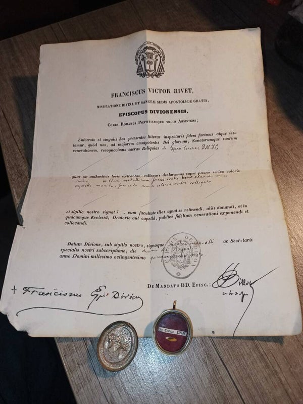 De spina Corona DNJC gilded relic holder and document
