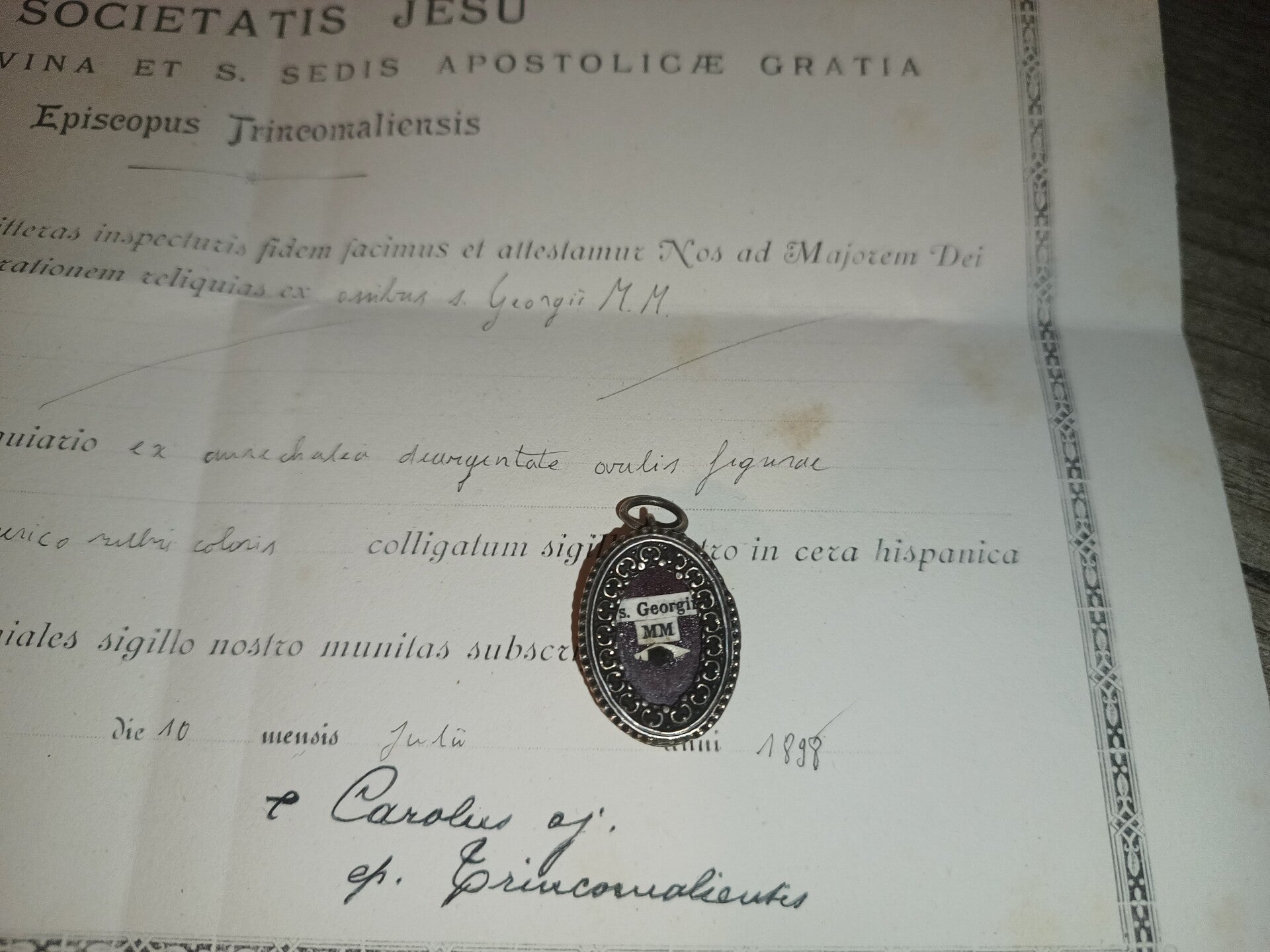 saint george relic and document silvered