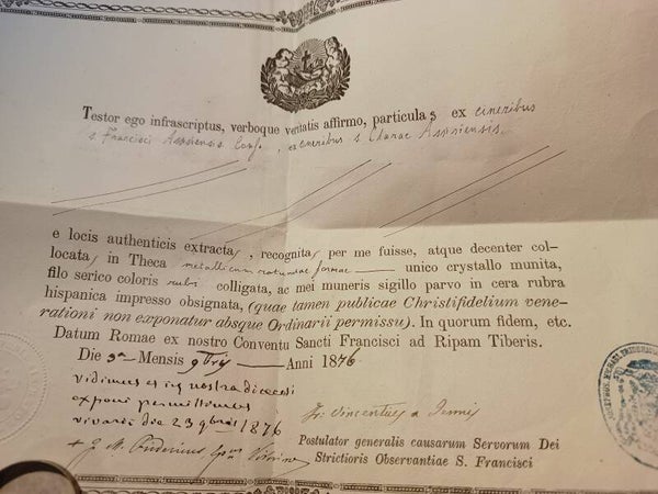 Saint Francis and saint clare relic and document first class
